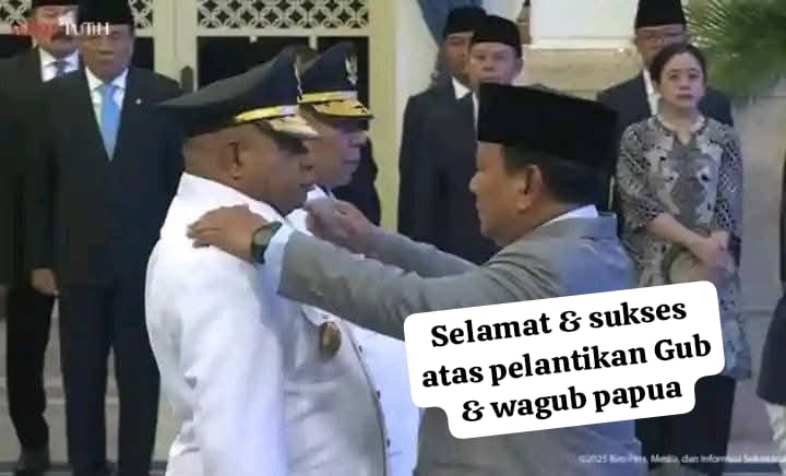 Saat berpose dengan Matius Aryoko di Istana Presiden dirinya bangga dan bersyukur atas pelaksanaan pelantikan terhadap Matius Aryoko sebagai Gubernur dan Wakil Gubernur Provinsi Papua periode 2025-2030 oleh Presiden Republik Indonesia di Istana Negara di Jakarta, 8 Oktober 2025. (timliputan/simonb).