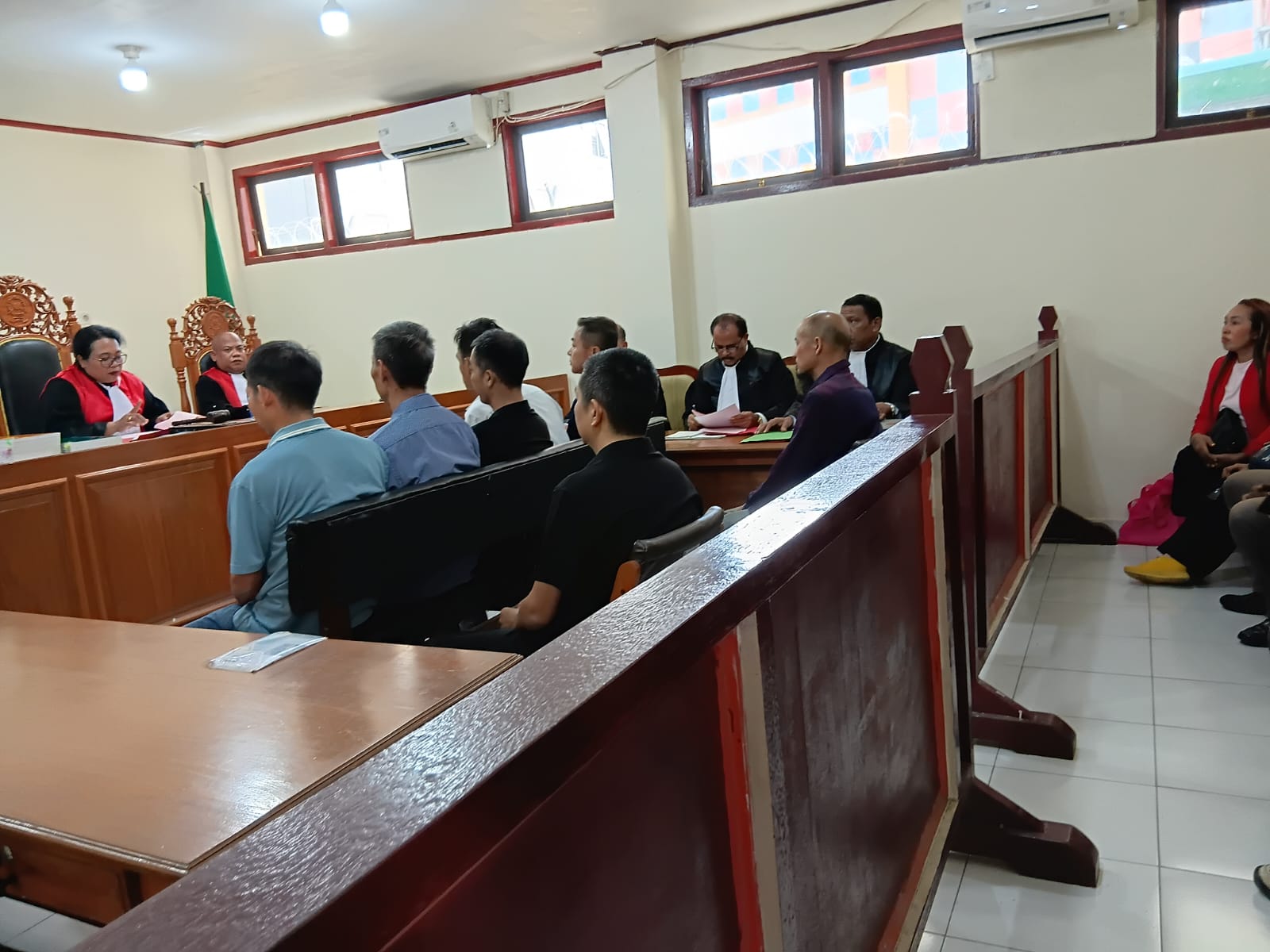 Sidang dipimpin oleh Majelis Hakim lengkap (Hakim Ketua dan dua Hakim Anggota) dengan menghadirkan tujuh orang terdakwa. Ketegangan bermula saat Hakim memastikan identitas para terdakwa dan mempersilakan Jaksa Penuntut Umum (JPU) Yosef, S.H., M.H. untuk membacakan dakwaan.